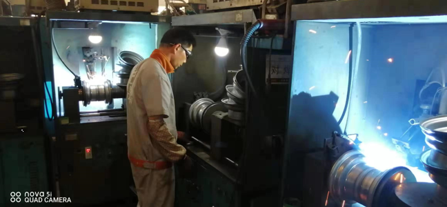 他在默默的堅守自己的崗位,用實際行動完美解釋了“沒有學不會的技術,只有懶惰的人”,他無時不刻在想著學習,學習新的知識努力掌握新的技術,他由簡單的打磨工、滾圈、整型、壓芯子、鉆孔、攻絲、壓槽、試漏,到后來的手動氧弧焊、手動焊保護罩、對焊、焊芯子,再到現在最新的自動機械手臂操作,他通過自己的不懈努力、勤奮好學掌握了13項技術,完美的詮釋了風馳的這種拼搏奮進、學無止境的匠人精神。