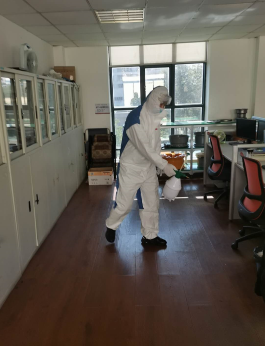 保障每位員工的健康是復(fù)工生產(chǎn)不容忽視的重要部分,充足的防疫物資是打好復(fù)工持久戰(zhàn)的關(guān)鍵。采購組積極準(zhǔn)備各類防疫物資,確保了口罩、酒精、消毒液、噴壺等發(fā)放至生產(chǎn)車間和員工手中。此外,公司黨支部黨員勇當(dāng)消毒先鋒提前做好辦公區(qū)、生產(chǎn)及作業(yè)場地等公共區(qū)域的消毒工作,以降低病毒的滋生能力和傳染力。