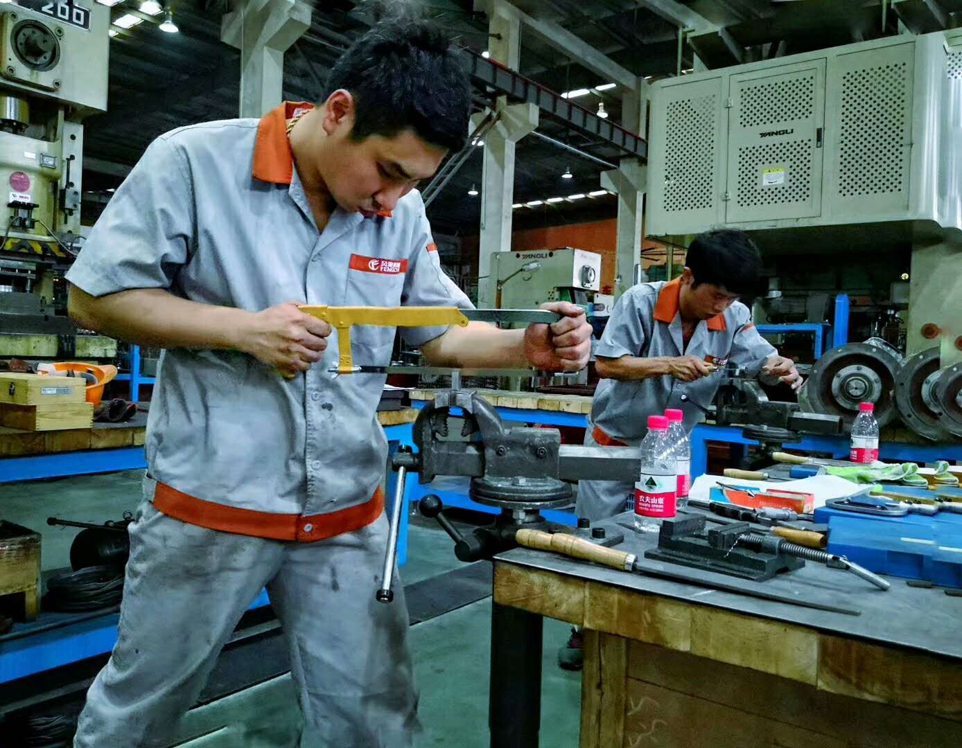 為全面提升鉗工人員的操作技能,5月26日,研發中心組織開展的鉗工技能競賽在公司鉗工車間舉行。本次競賽以考核職工的鉗工操作技能為核心,注重零件精度、工藝過程的考核,競賽分為理論競賽與實操競賽兩部分。參加竟賽的20名鉗工各展所能,一決高低。對獲得此次大賽前2 名的選手,由公司授予“公司技術能手”榮譽稱號,并推薦參加溫嶺市職業技能大賽。對獲得本次公司大賽第一名的選手,給予經濟獎勵同時工資上調一檔;對獲得本次公司大賽第二名、第三名、第四名、第五名的選手,給予經濟獎勵。