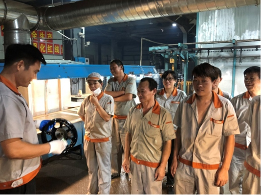 2019年9月17日,針對前期本田客戶反饋特黑GJBA軸套與制動轂周邊出現(xiàn)白色異物的情況,生產(chǎn)部特組織對GJBA擦修工序員工展開擦銹技能培訓(xùn),此次培訓(xùn)由涂裝車間主任朱新華主講,分別結(jié)合實際案例、作業(yè)指導(dǎo)書、現(xiàn)場操作等形式展開培訓(xùn),以求達(dá)到更好培訓(xùn)效果。
